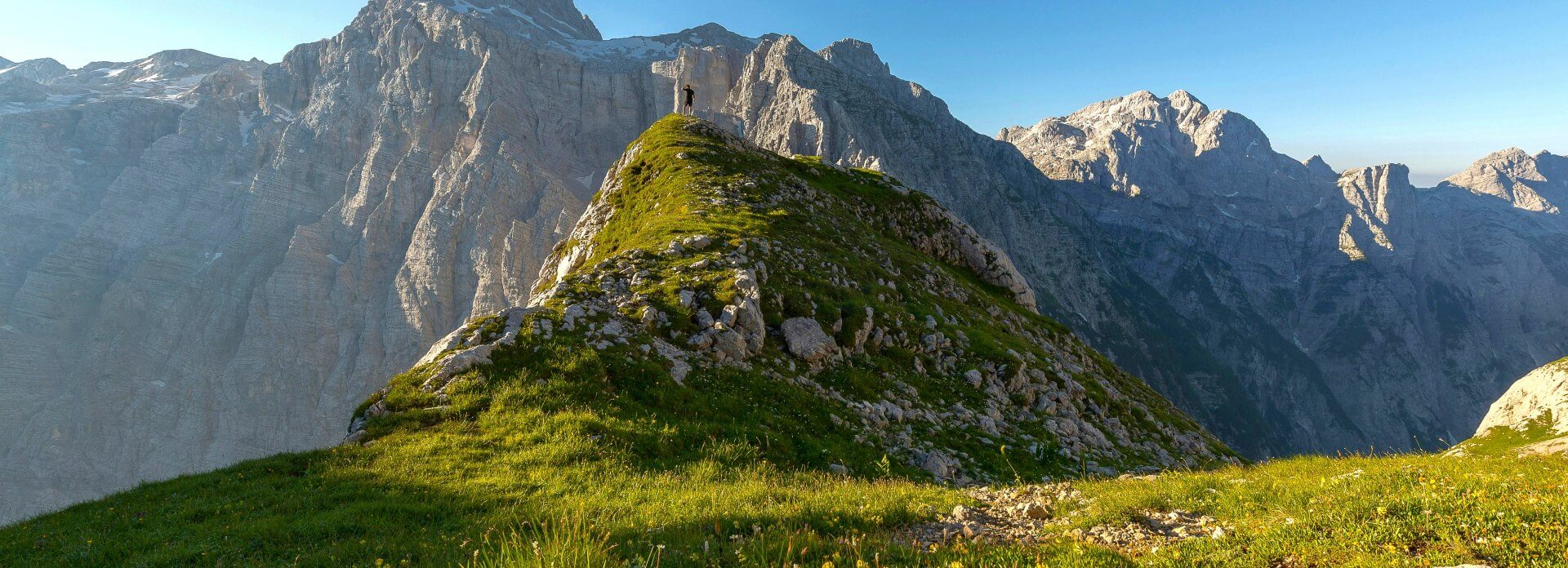Ritrovo dei partecipanti nelle località previste e trasferimento in pulmino/bus privato, fino alla stazione della telecabina del Monte Lussari (1760m). Salita al Santuario, visita e ristoro. Inizio escursione alla panoramicissima Cima del Cacciatore (2071 m). Facoltativa: salita anche l’ultimo risalto roccioso della cima (non difficile) con l’aiuto di un cordino metallico. Rientro dalla stessa. Discesa in telecabina, assegnazione camere, cena e pernottamento. Dopo cena briefing e introduzione alle Alpi Giulie e al loro insuperabile e mitico cantore: Julius Kugy.