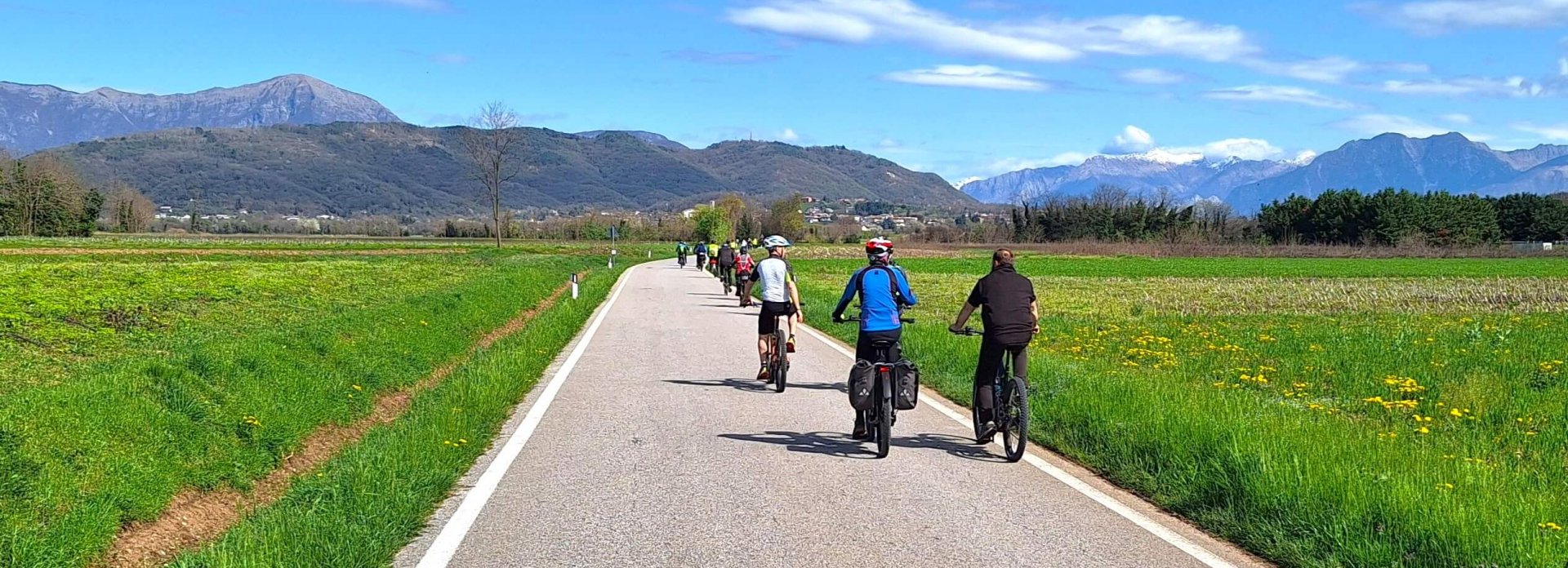 Prima colazione e rilascio camere. Ci avviamo verso il ritorno che da Padova conduce sulla pista ciclabile su argine sterrato fino a Creola, poi strade a basso traffico e altri brevi tratti ciclabili. Il paesaggio è sempre gradevole passando dai Colli Euganei a quelli Berici che fanno da cornice. Passiamo nelle vicinanze del piccolo Castello di San Martino, e quello di Montegalda; superando un ponte ciclopedonale presso un ex mulino, si apre un colpo d’occhio molto panoramico. In un paesaggio di campagna costeggiando spesso il fiume e attraversando piccoli paesi con castelli e belle chiese immerse nella natura, arriviamo a Vicenza. Passeggiata libera nel centro storico, ricco di palazzi rinascimentali e ville antiche, carico biciclette personali e nel tardo pomeriggio partenza con bus per rientro alle località di partenza.