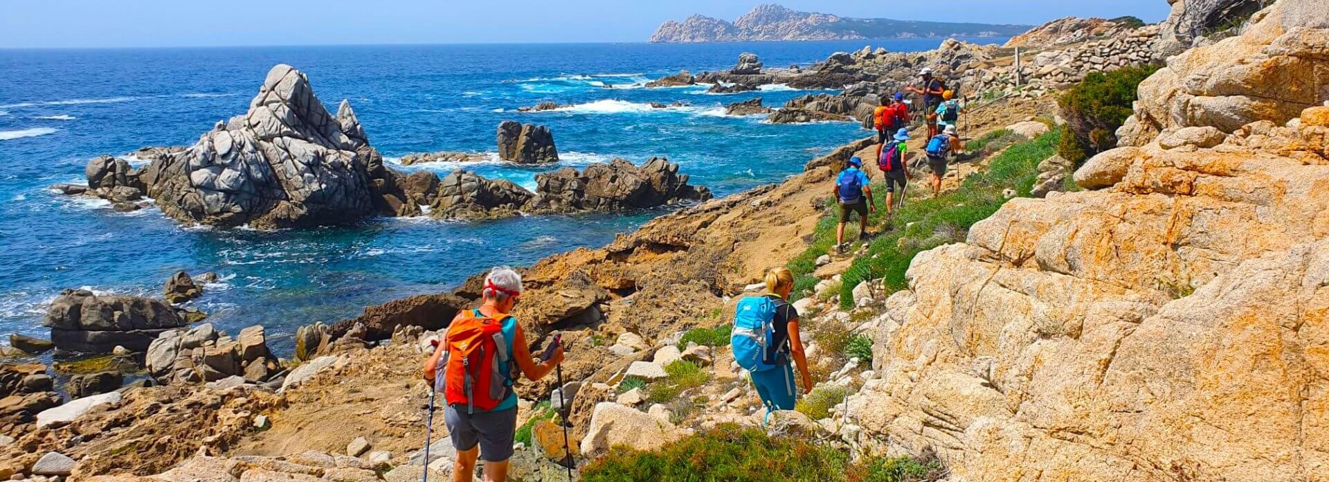 Un percorso incontaminato di circa 65 chilometri nella costa settentrionale della Sardegna che ci condurrà alla scoperta della costa dal borgo di Isola Rossa a Santa Teresa di Gallura. Circondati da elicriso profumati e fioriture di macchia mediterranea, cammineremo lungo dune di sabbia bianchissima, piccole calette nascoste e scogliere dalle mille forme e di granito con un caldo color rosso. Il mare ci accompagna fino alla stretta delle Bocche di Bonifacio dove si intravede la costa della vicina Corsica.